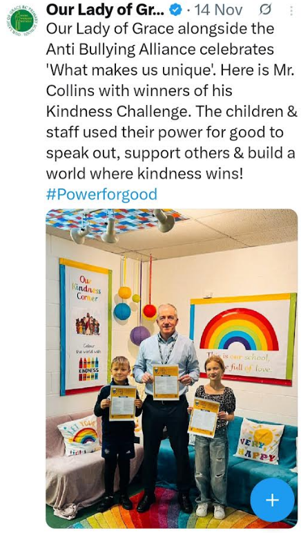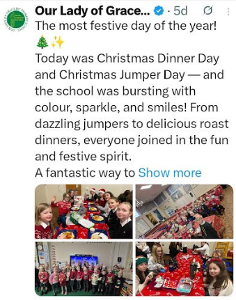 Gaelic football coaching returned to Our Lady of Grace this month. The visiting coaches were so impressed with the children's enthusiasm, positive attitude and athleticism that they invited many of the pupils to attend trials at a local club!