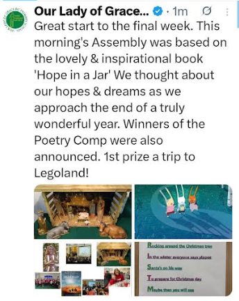 Our Lady of Grace took Years 1-6 to watch a wonderful pantomime at Middleton Arena. We watched Sleeping Beauty which was enjoyed by all! It was great to see the whole school having fun in one place on this fantastic trip.