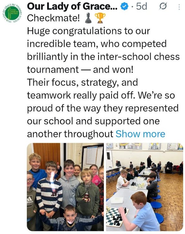 Unstoppable! Following on from last year's success where the team earned the opportunity to play at a Premier League Stadium. The Our Lady of Grace Girl's Football Team returned to Manchester United's training facility in Salford to compete again in their annual tournament. The girl's defended their title, finishing as Champions and winning every match! What a day. What an experience. The girls were a credit to the school and their families. We are all very proud.