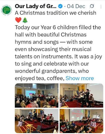 One of the most enjoyable times of the year is when Year 6 invite their grandparents and relatives to watch the concert performance. It was a great turn out with many mince pies eaten and tea drunk. The children performed a fantastic mix of carols and classics to entertain those who came.
